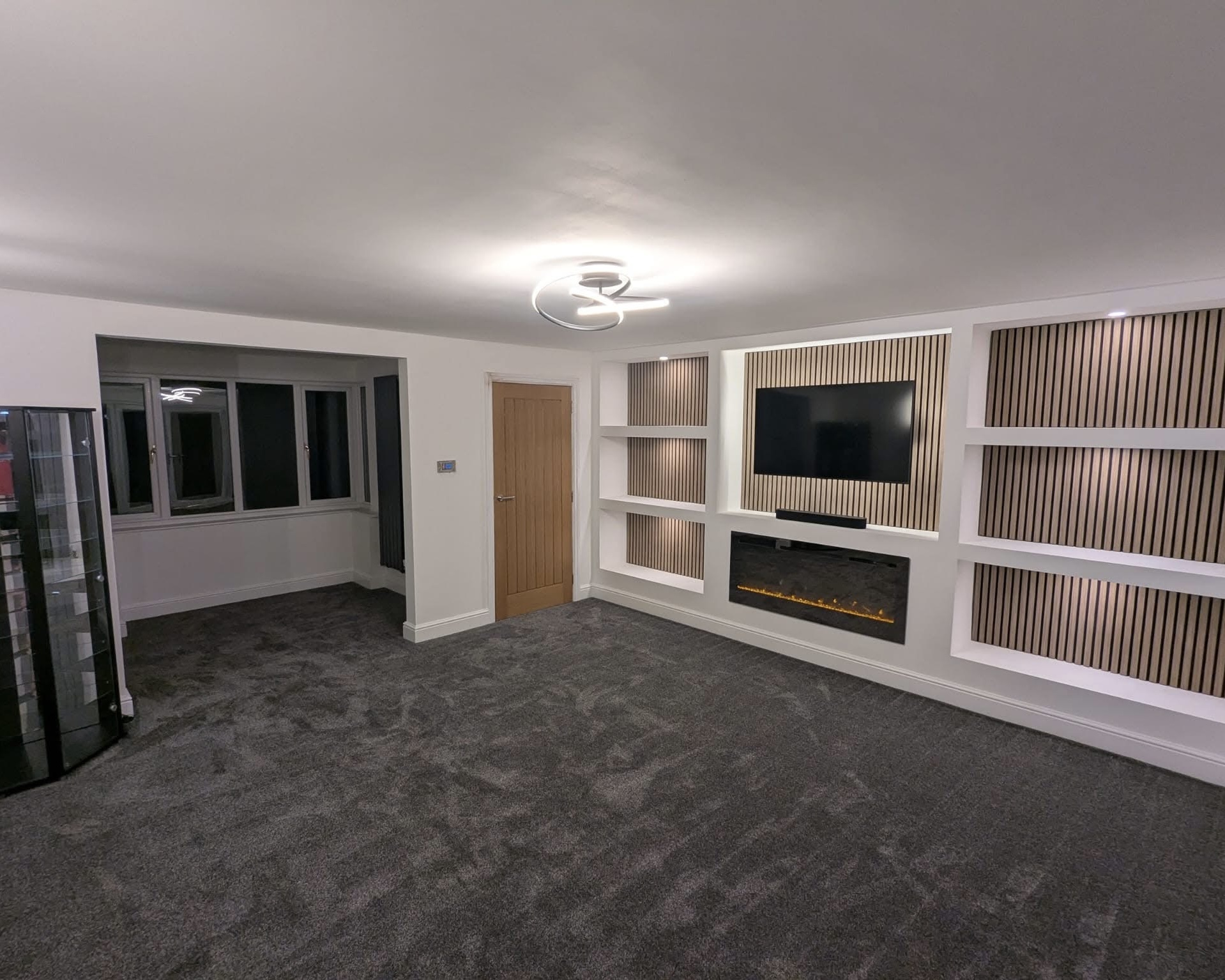 We invited a couple of companies to quote for our living room renovation and we immediately got a good feeling about Pristine. Mark and his team have done an absolutely brilliant job and we couldn't be more please with the result! We had a wall knocked through, internal doors bricked up, media wall put in, new patio doors, all walls and ceiling replastered, new radiators, hardwood floor taken up and floor re-levelled for carpet to go in and various other smaller jobs along the way, there's nothing these guys can't do! We will definitely be hiring them again for our next project.
